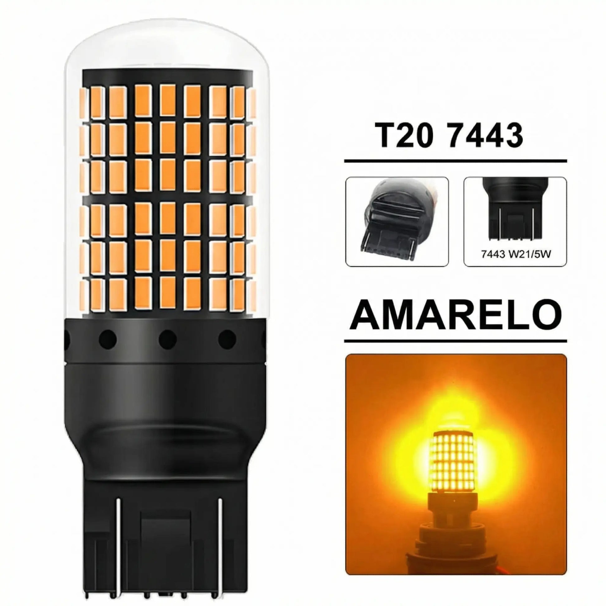 🔥 144 LEDs 3014 SMD de alta potência 💡 Iluminação 360° + luz superior 👁️ Até 300% mais brilhante que LEDs comuns de 5W ⚡ Acendimento instantâneo (resposta imediata) 🚗 Mais visibilidade para setas, freio e lanterna 🔌 Instalação simples (Plug and Play)